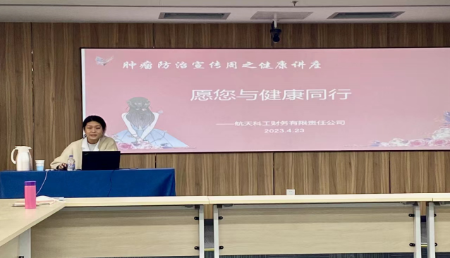 开展讲座和咨询活动。财务公司邀请航天中心医院健康管理部李晓悦医生为公司女职工进行了名为《“乳”此美好,与健康同行》的防癌健康讲座,讲解了乳腺癌的成因与防控,给女职工们上了一堂生动的科普课。此外,宣传周期间,东直门中医院的医生前来公司开展了温馨的义诊活动。